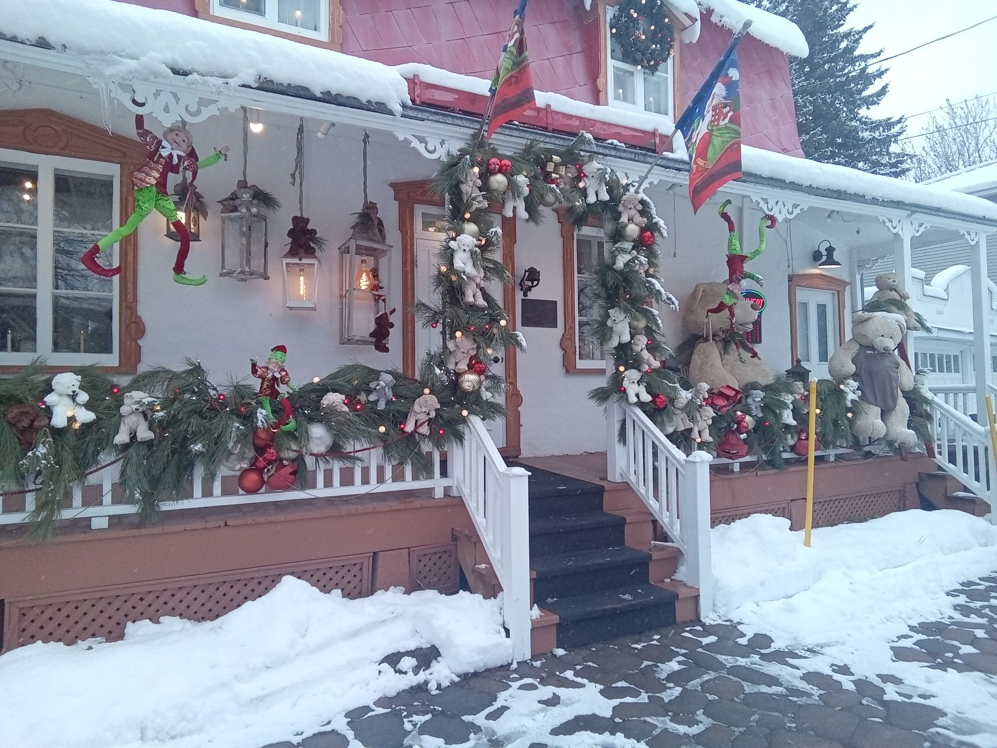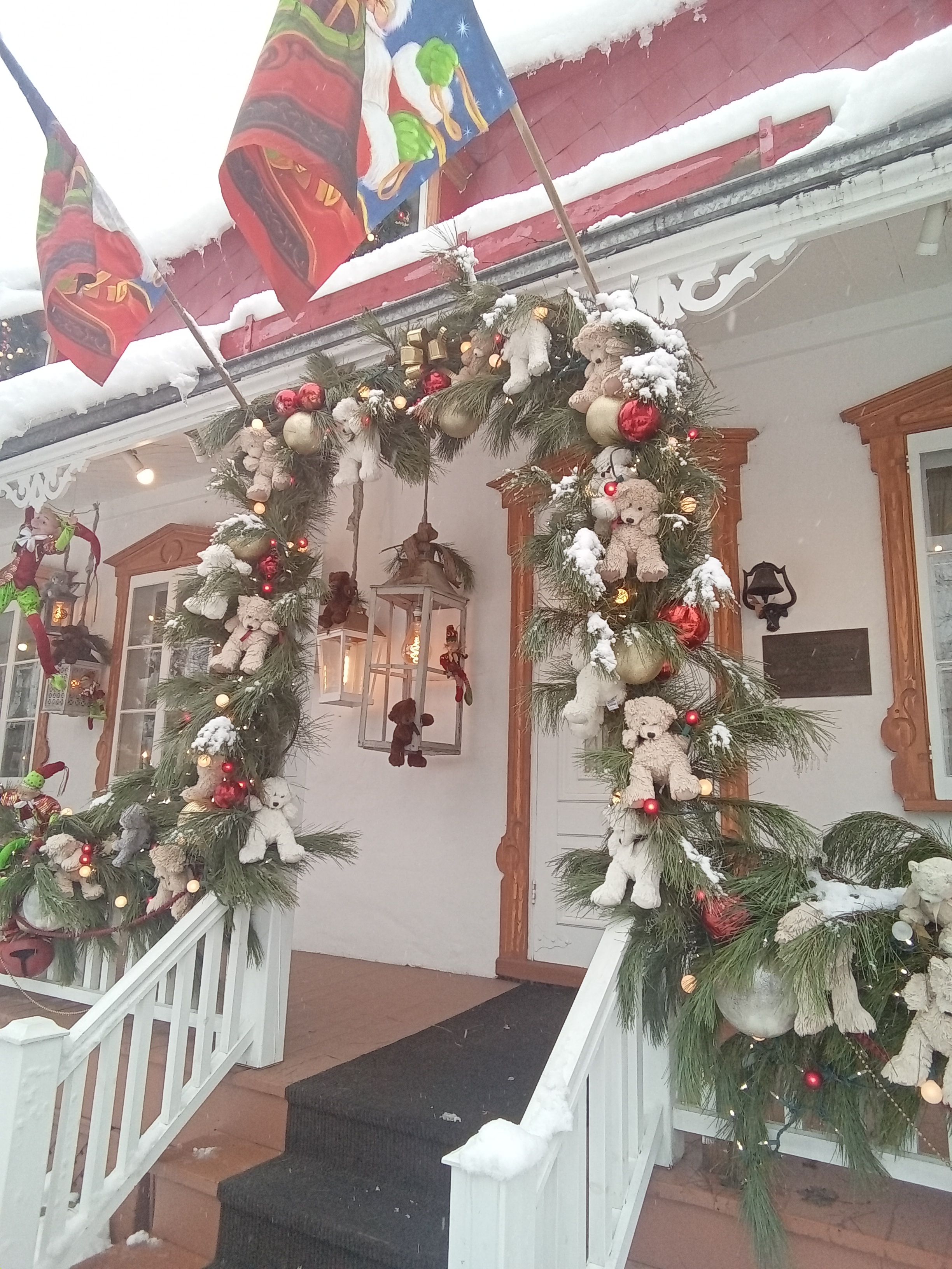 Je suis de celle qui croit encore à la magie de Noël. Pas que je m’attends à trouver un cadeau du Père Noël ou de la Mère Noël sous le sapin, pas plus que je crois qu’un miracle surviendra prochainement. Seulement, j’ai toujours associé Noël à l’espoir de temps meilleur, symbolisé principalement par ces lumières qui traversent les ténèbres des plus longues nuits de l’année. Je raffole des lumières de Noël. Blanche, dorée, argentée, colorée, je les admire toutes avec grand plaisir et une certaine révérence. Je laisse les guirlandes de lumière du sapin allumée durant au moins toute une nuit à chaque période des Fêtes, comme une façon de chasser le mauvais sort, de repousser les ombres qui ne sont jamais bien loins. Est-ce que ça fonctionne ? Je ne saurais dire, mais je le fais pareil chaque année. Je vous ai donc préparé tout un mélange de féérie de Noël, de décors qui ont croisé ma route, de belles choses vues sur les réseaux sociaux, le tout teinté d’un peu de folkore. Pour commencer, quelques photos que j’ai prises au début du mois, lors d’une visite dans un quartier de ma ville.