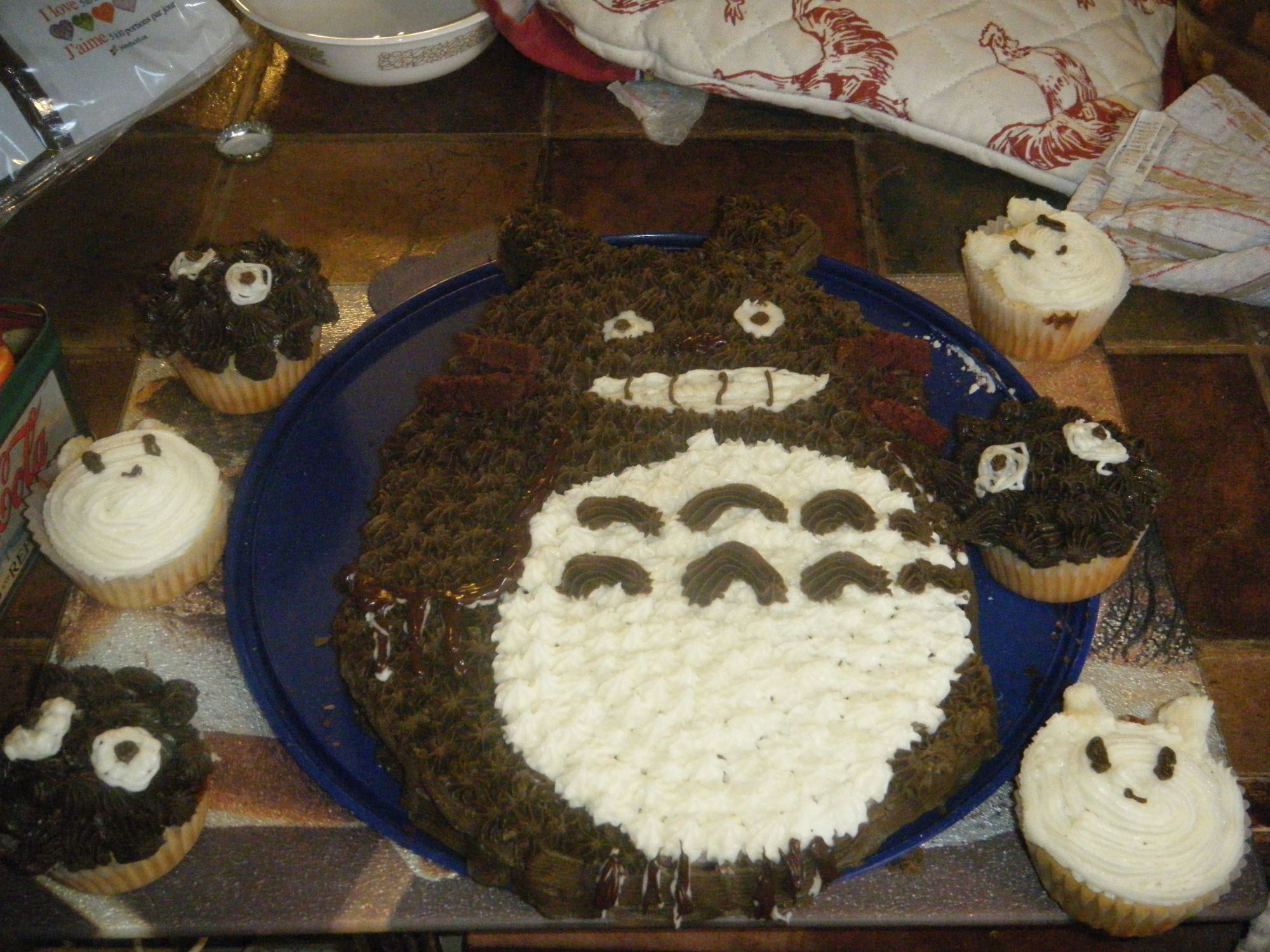 Quand on dit que tout peut être animé dans les croyances shintoïstes, Hayao Miyazaki a été jusqu’à représenter de la poussière et de la suie animée dans son film Mon Voisin Totoro et puis, plus tard, dans son film Le voyage de Chihiro. Bien que les susuwatari semblent être une création moderne, ils personnifient bien la diversité et la versalité des êtres fantastiques peuplant l’imaginaire japonais. Totoro et le chat-bus, deux autres des créatures présentés dans Mon Voisin Totoro sont probablement plus près de légendes existantes ; le nom de Totoro viendrait de l’équivalent japonais de troll et le chat-bus partage certaines ressemblances à un yôkai ancien, le bakeneko, bien que la version offerte par Miyazaki est bien moins malicieuse. Tout ça me donne très envie de revoir Mon Voisin Totoro, sans doute l’un des films du Studio Ghibli que j’ai visionné le plus souvent ! Je vous ai inclus une photo d’un gâteau d’anniversaire et cupcakes assortis basés sur les créatures de Totoro que j’avais réalisés il y a plusieurs années. Ça vous donne une idée à quel point les créatures présentées dans ce film me fascinent !