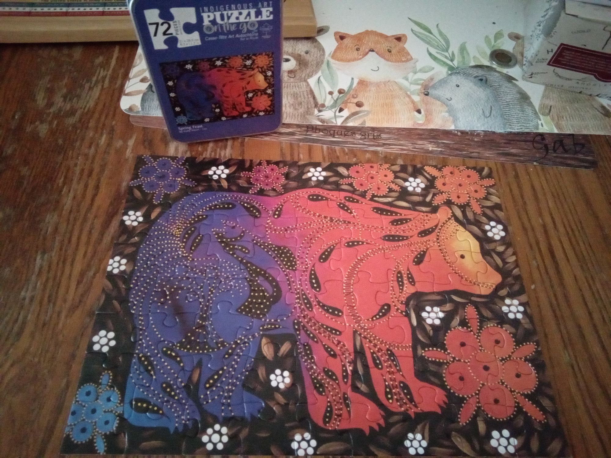 Le dernier objectif est le seul que j’ai peu avancé, bien que j’ai exprimé ma créativité dans quelques confections culinaires et ça compte quand même ! J’aurais tout de même aimé faire un peu de bricolage, de collage ou de couture. Il est certain que les sorties qui se sont multipliées après un début de printemps assez calme suivant le retour de notre voyage trépidant en Colombie-Britannique, les réminescences et partages en lien avec ce dernier voyage, les trois week-ends à l’extérieur de la maison et les défis culturels ne m’ont pas laissé tant de temps libre. Le temps qu’il me restait était dédié à la décompression, la lecture, l’écriture, le dessin, la cuisine, les visionnements de films et séries, et les visites sur vos blogs respectifs. Ah oui, et un peu de jeux, que ce soit des jeux de tables avec mon conjoint ou des jeux mobiles (j’ai repassé deux fois à travers les niveaux du jeu relaxant de tuiles à associer de Buddy Gator).