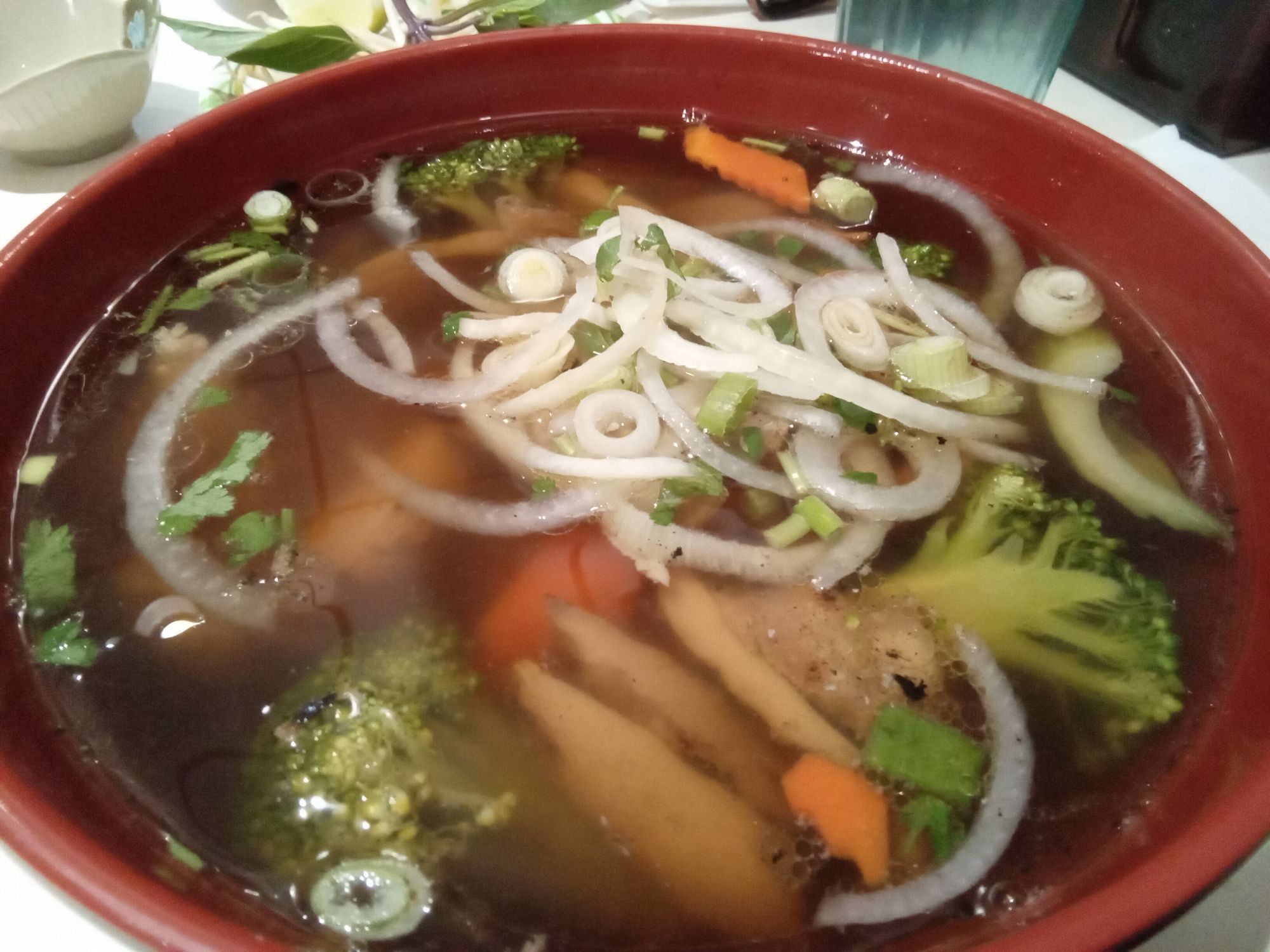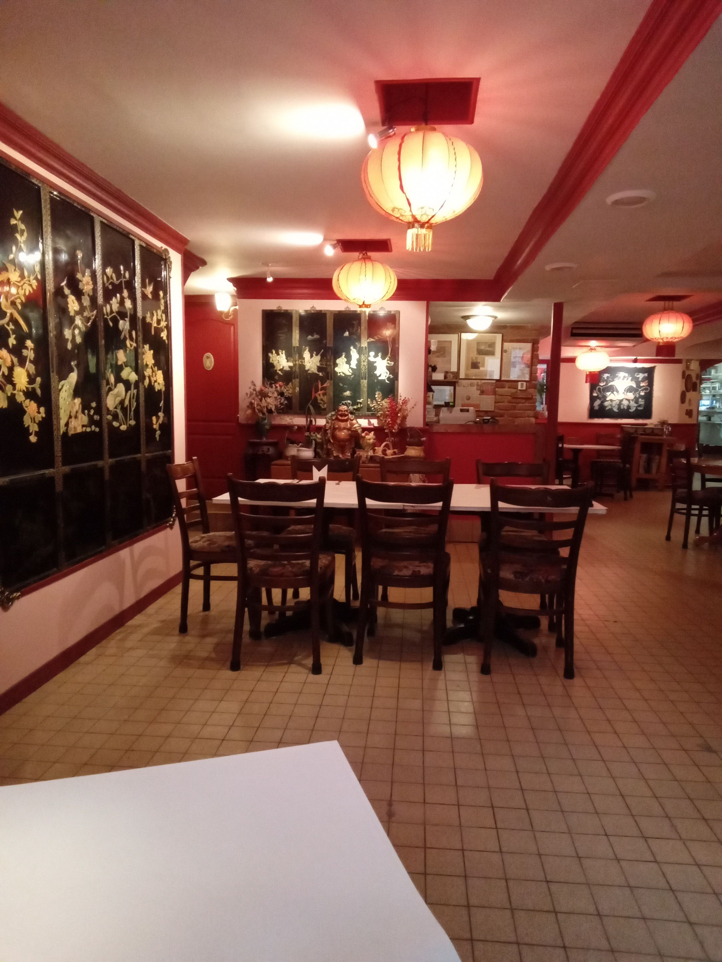 Dans les photos incluses ci-dessus pour mes réalisations dans la cuisine ce printemps, vous remarquerez que je n’ai pas inclus toutes mes réalisations du Mois anglais comme elles ont déjà amplement été présentées durant mes pauses gourmandes de juin. Dans mes créations notoires, il y a le gâteau que j’ai préparé pour l’anniversaire de cohabitation de mon conjoint et moi. Ce n’était rien de compliqué, ma recette de base de gâteau au chocolat avec un brin de glaçage, parce que je voulais m’amuser un peu avec mes douilles, mais que mon conjoint préférait juste du gâteau. Le design m’a été inspiré par des réalisations vues sur Instagram. Néanmoins, je ne sais plus où, si c’est un compte que je suis ou non. Entre vous et moi, ce n’était néanmoins pas le design prévu au départ… en manipulant mon gâteau, d’un format plus grand que j’ai l’habitude, je l’ai brisé en diagonale d’un bout à l’autre. J’ai décidé d’utiliser la décoration pour camoufler le tout et c’est comme ça que m’est venu à l’esprit de tester cette façon de combiner quelques textures variées, de tailles et de couleurs différentes, pour créer un motif. Le résultat était assez concluant et le plus important, délicieux. Sinon, je vous ai inclus ci-dessous quelques photos aussi en lien avec la nourriture. Je les ai mises à part comme celles-ci sont liées à des expériences au restaurant ou avec des produits commerciaux ou artisanaux qui ne sont pas de mon cru. Pour l’un des restaurants, celui où on voit l’intérieur, c’était un souper improvisé dans un excellent restaurant de cuisine chinoise près de nos lieux de travail pour notre anniversaire justement. Improvisé pour moi en tout cas, je ne sais pas quand l’idée est venue à mon conjoint d’aller souper après une journée où nous travaillions tous deux au bureau.
