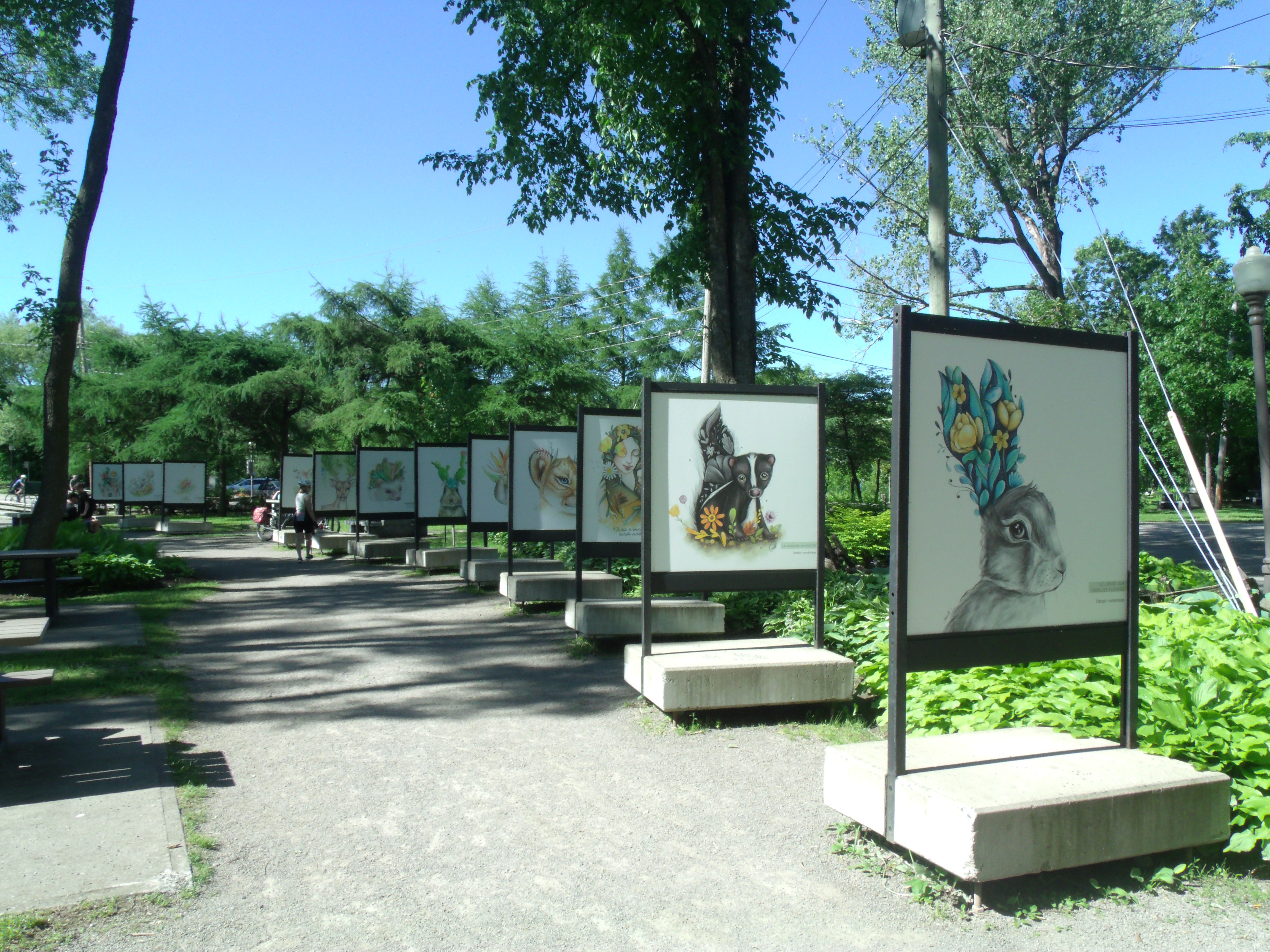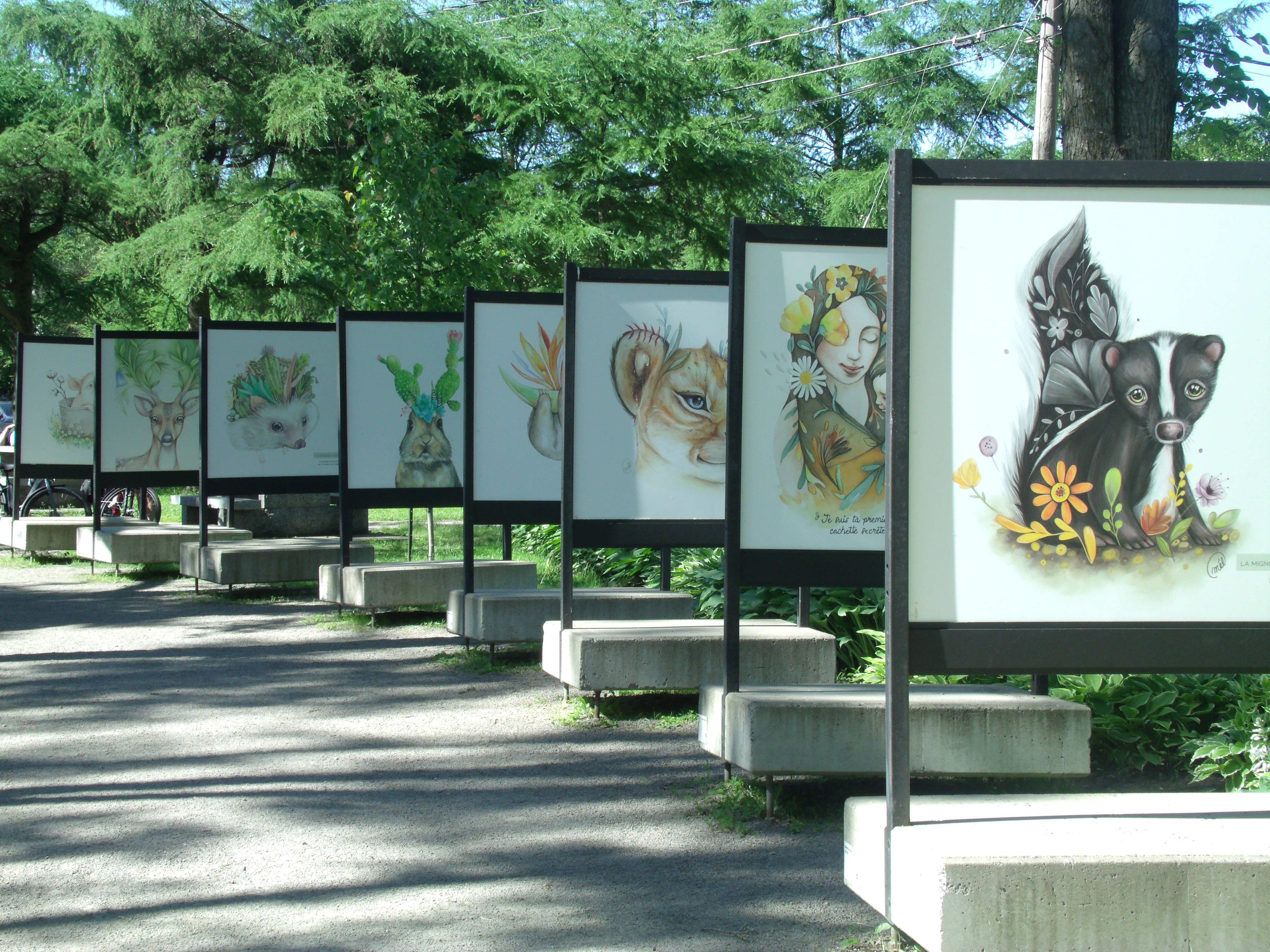 Je l’ai déjà mentionné ci-haut et aussi dans plusieurs de mes billets du printemps, je me suis promenée pas mal entre ma ville et la région de Montréal, trois week-ends en quatre semaines, ce qui m’a permis de souligner la fête des mères avec ma mère, de visiter ma nièce qui a eu un an en mai, de voir des ami-es à Montréal et courir après les Monsieur Rose de Philippe Katerine dispersés dans le centre-ville, de fêter l’anniversaire de ma mère, et de participer au baby shower de ma plus jeune soeur (où j’ai campé avec un nounours). Si vous vous demandez, je n’ai pas joué au Scrabble géant. La partie battait son plein quand nous sommes arrivés et nous ne sommes pas restés longtemps (et il devait y avoir déjà des noms sur la liste d’attente, cette place étant en plein centre-ville de Montréal et très achalandé). Lors d’une de ces visites, il y a eu aussi le ciné-parc où j’ai vu le film Garfield, comme je vous ai raconté l’expérience au début du mois de juin. Vous comprendrez sans doute que durant cette séquence de séjours à l’extérieur, j’étais moins sorteuse durant les week-ends entre chaque visite. Donc, hors de ces visites, les sorties locales ont grandement diminué. Toutefois, en juin, il y a eu une excursion locale. Mon conjoint et moi sommes retournés au Domaine de Maizeret que j’ai visité pour la première fois en septembre dernier. Cette fois, nous n’avons pas fait un tour complet. Nous nous sommes contentés de nous balader dans ma portion préférée, celle du milieu humide, et profiter de l’exposition d’art en plein air.