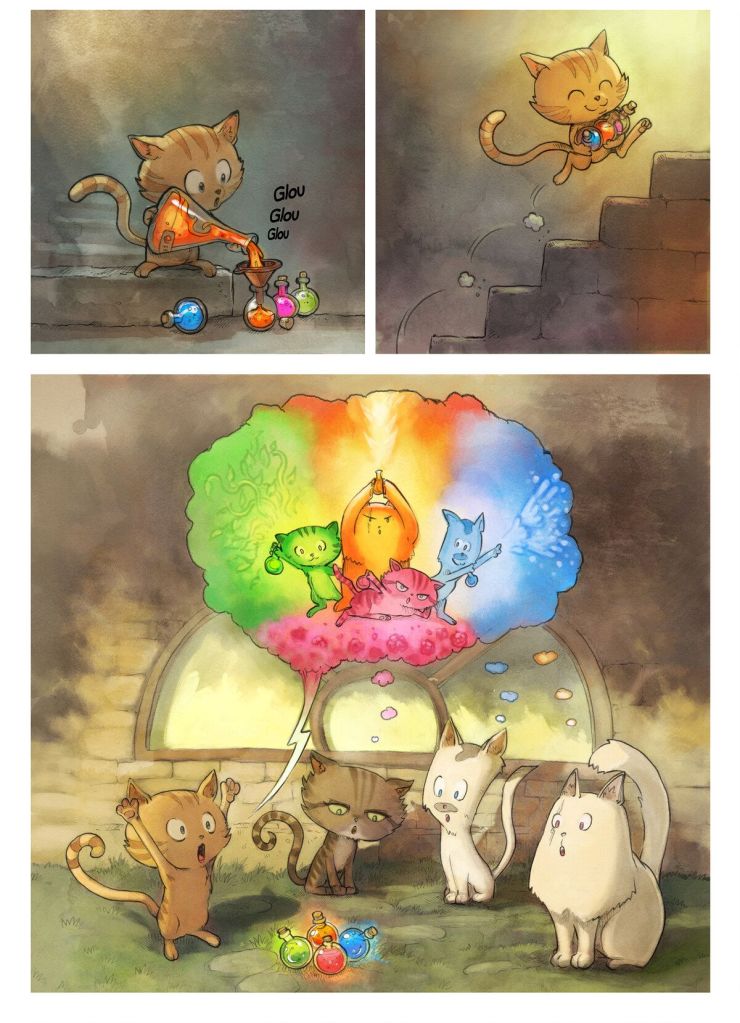 David Revoy qui publie depuis dix ans le webtoon Pepper & Carrot que j’ai dévoré en juin. Je suis son blog depuis, j’ai hâte de lire la fin de Pepper & Carrot et de continuer de découvrir son nouveau projet. Vous pouvez lire tous les épisodes gratuitement en ligne en plus de 60 langues dont le français. Le tout est distribué en licence Creative Commons Attribution 4.0 International license. Je vous inclus un extrait de l’Épisode 2 : Les potions arc-en-ciel (publié le 2014-07-25) mettant vedette Carrot le charmant familier de Pepper. Il vous rappelle pas un certain quelqu’un ?