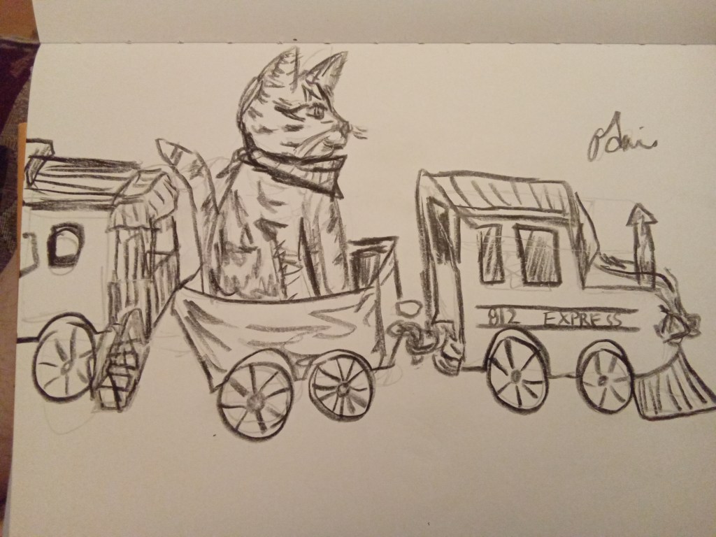 Ce deuxième anniversaire depuis le partage de la première partie de la Miaougraphie dessinée de Clément me semble un moment opportun pour ressasser ce qui a marqué cette deuxième année à le représenter sous forme picturale. Alors, depuis avril 2024, se sont ajoutés à ma collection de souvenirs dessinés de Clément la suite et fin de ma série saisonnière de Clément à la craie sur tableau noir, quelques dessins de craie éphémères sur l’asphalte de la cour, des portraits en différents médiums, dont quelques-uns inusités jusqu’à maintenant à la Miaougraphie dessinée, il y a eu l’ébauche d’une planche de BD commémorant un amalgame de souvenirs de Clément au bord du bain, la reprise de quelques dessins de la première année pour les peaufiner en ajoutant couleurs ou encrage, un mois d’Inktober fortement influencé par Clément, et tout récemment, une contribution de mon conjoint. Au-delà de la Miaougraphie dessinée de Clément, il y a eu un peu de renardises et de féérie.