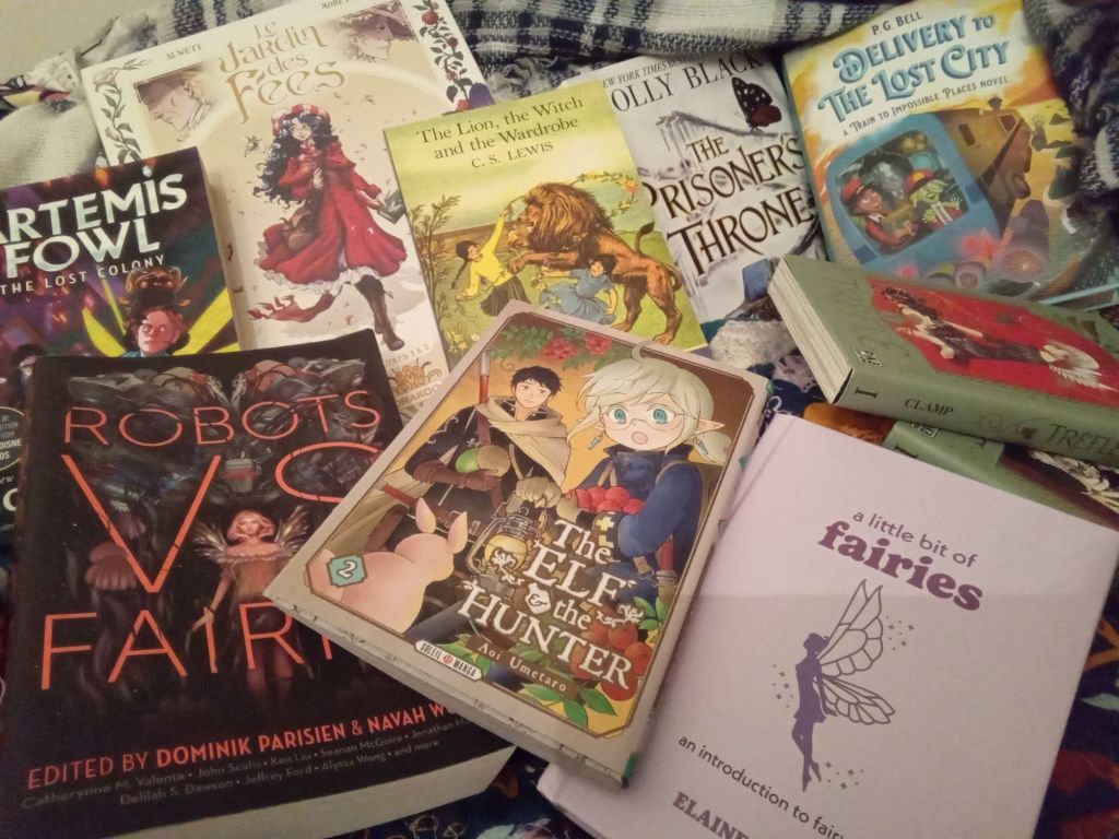 Vous vous en doutez peut-être un peu, mais je n’ai pas réussi avec tous ces titres à caser tous les livres non lus de ma collection abordant de près ou de loin le monde des fées pour ce printemps de lecture merveilleuse. Sans inclure tous les livres qui incluent par la bande des êtres magiques. D’ailleurs, mes lectures précédant la sélection ci-dessus ont constitué un prélude inattendu à celle-ci, soit par certains de leurs personnages secondaires ou par l’évocation d’une légende, ou même simplement une expression à tonalité fantasmagorique. En tout cas, j’ai de quoi faire une pige sur un thème semblable un autre jour, ou peut-être les caserai-je autrement. En attendant, cette sélection me permet de faire un clin d’œil à plusieurs défis culturels auxquels je prends part, même si moins activement, dont le mois au Japon, qui bien qu’il a lieu en avril s’étire souvent jusqu’à l’été, avec Hilde et Lou. Puis, Holly Black et Elaine Clayton sont deux autrices américaines, ce qui me permet d’ajouter ce billet à ma (maigre) liste pour An American Year 2024-2025. Et j’ai même quelques tons anglais dans cette liste avec le classique des Chroniques de Narnia (et des nuances voisines avec deux Gallois (P.G. Bell et Natasha Bowen)). Cela me fait réaliser d’une autre caractéristique de cette sélection, elle inclut des perspectives de plusieurs cultures différentes.
