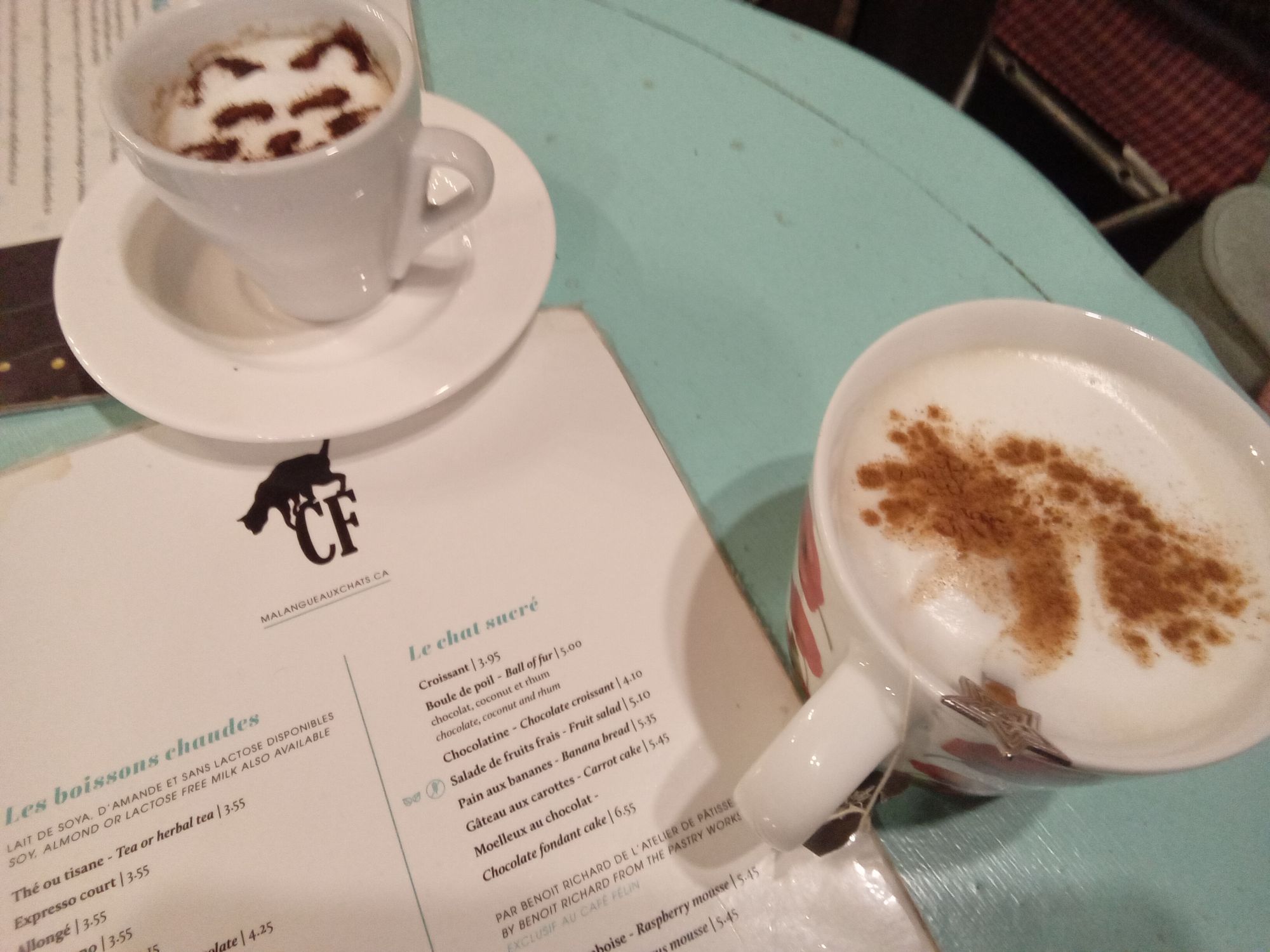 D’abord, hiver 2025, après une visite de maison plutôt désastreuse, mon conjoint et moi avions besoin d’un petit remontant et j’ai songé au certificat-cadeau que j’avais acheté il y a un certain temps pour tester un des premiers cafés félins de la région, que nous n’avions pas encore visités. Ça a été une visite des plus réussies, pleines de douceur et d’émotion, tout particulièrement comme mon conjoint a passé la moitié du temps à tenter de manger pendant qu’un des chats très insistants voulait sa part. C’était tellement adorable et surtout, ça nous a rappelé tous ces moments où Clément tentait de s’immiscer dans notre assiette pendant le repas. Ça faisait longtemps que nous n’avions pas vécu une telle scène et ça nous a tout deux réchauffer le cœur. Et après une deuxième déception durant notre recherche de notre prochain chez-nous, nous en avions tous deux bien besoin.