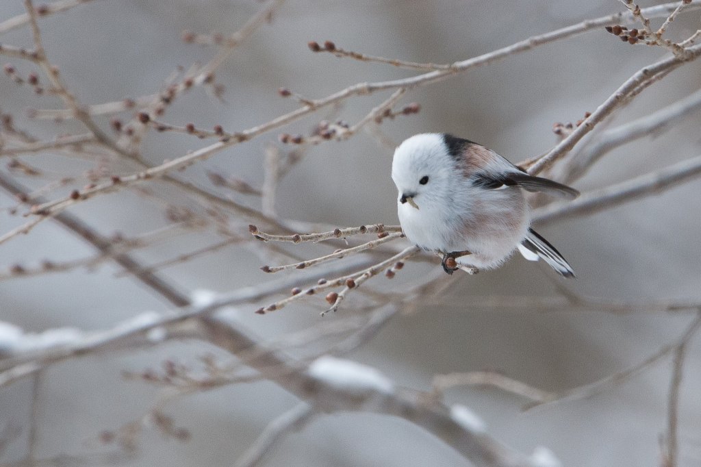 Pendant que je cherchais une illustration pour accompagner le rendez-vous du vendredi des Fées de février, je suis tombée sur une image qui m’a rappelé un sujet potentiel que j’avais identifié il y a quelques temps et que j’avais totalement oublié. Ce sujet convient bien à la saison et il finit parfaitement le mois d’avril, qui est le mois du défi Un mois au Japon d’Hilde et Lou. Ceux et celles qui ont déjà croisé, virtuellement plus probablement qu’autrement, ce petit être l’ont peut-être deviné entre le titre de ce billet et la mention du challenge. Aujourd’hui, je vous présente un petit oiseau dont le surnom est aussi adorable que son apparence, la Fée des neiges, le snow fairy bird, connu au Japon sous le nom de shima-enaga, une sous-espèce de mésange à longue queue, endémique à la région du Nord du Japon, Hokkaido.